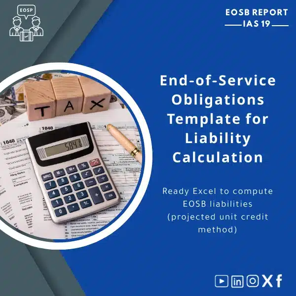 A ready-to-use Excel model that calculates End-of-Service obligations using the projected unit credit method and produces the actuarial schedules, assumptions and IAS 19 disclosures required for audited financial statements.